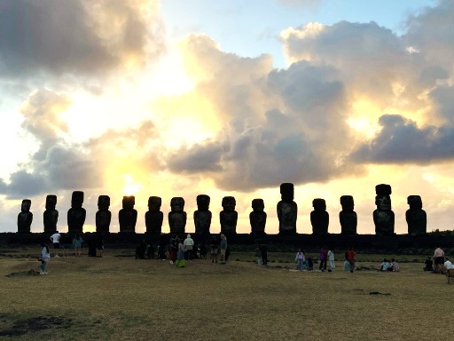 | 崖上にはオロンゴ儀式村がある。 | モアイのある港に帰ってきました。 |