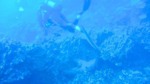 | ホテル・ハンガロア沖がエントリーポイント。 | サンゴが付いた昔のアンカー。 | アカヒメジ(25㎝)。 | ヤガラ(45㎝)。 | ホテル・タハタイ沖がエグジットポイント。 |