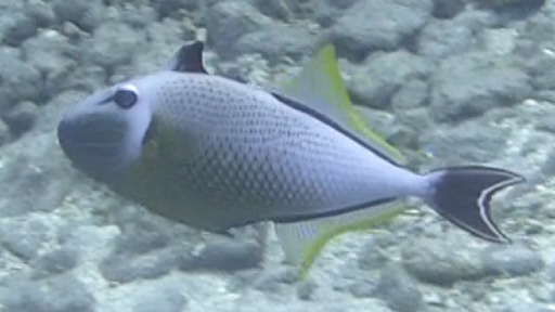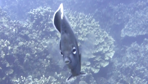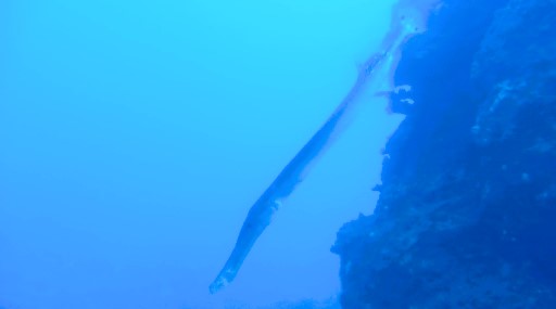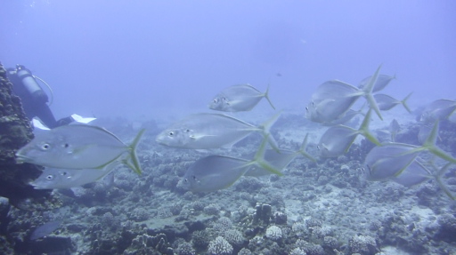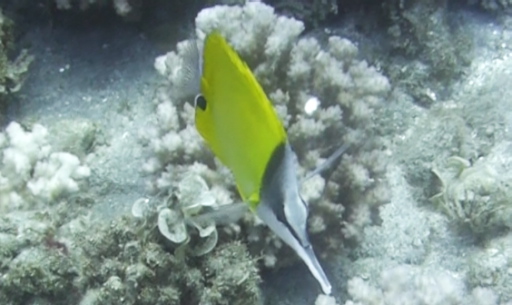 | ヤガラとニザダイ(15cm)。 | 黄色いヤガラ(約40cm)。 | 黒ヤガラが近くを通過。 |