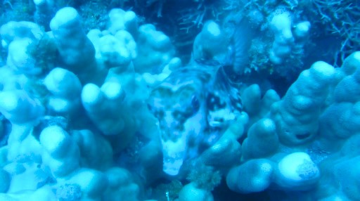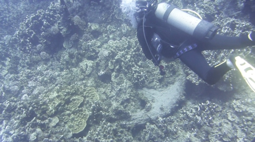 | 水中モアイの後ろにアカヒメジ。 | 昔のアンカー。 | ウツボ(直径5cm)。 |