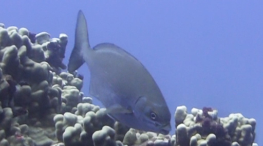 | ポイントまでボートで15分。 | イースター島固有種の魚(3cm)。 | ローニンアジ(40㎝、水深25m)。 | イスズミはBBQにグッド(30㎝)。 | トランペットフッシュ(50cm)。 |